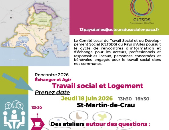 Les rencontres « Travail social et développement local en Pays d’Arles » à St-Martin-de-Crau 13h30 16h45 Échanger et Agir sur les défis « Travail social et…